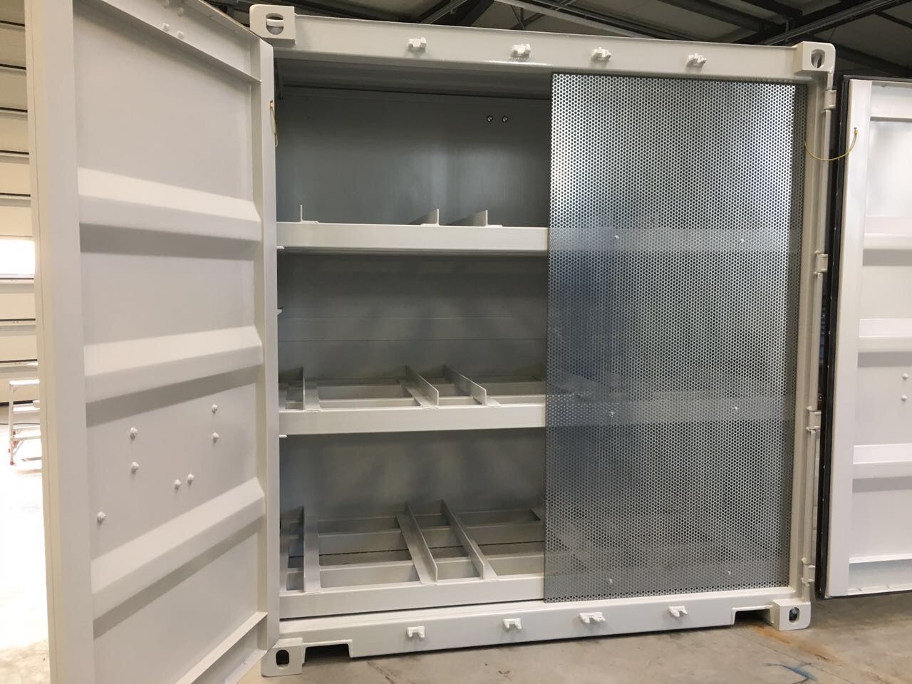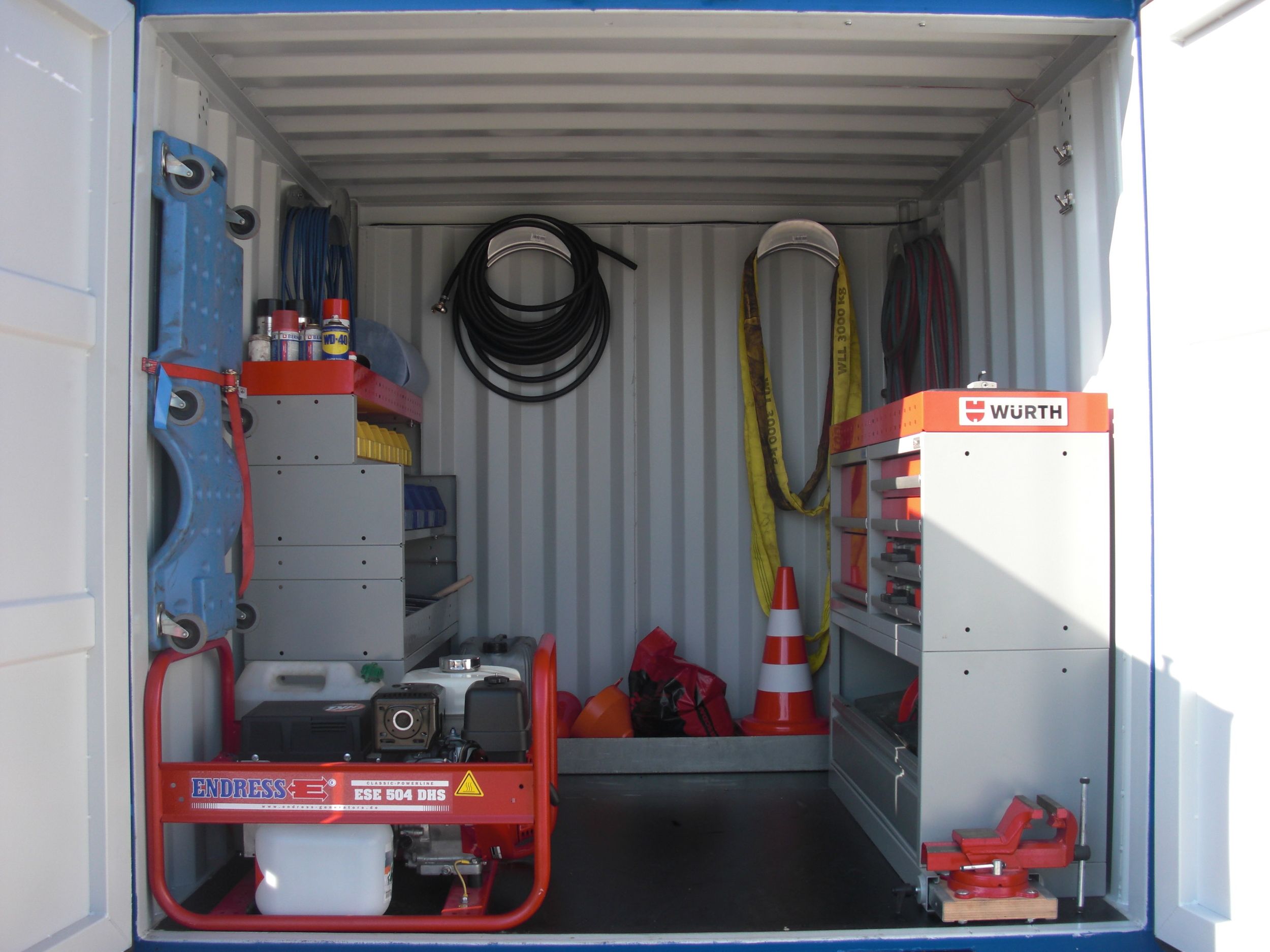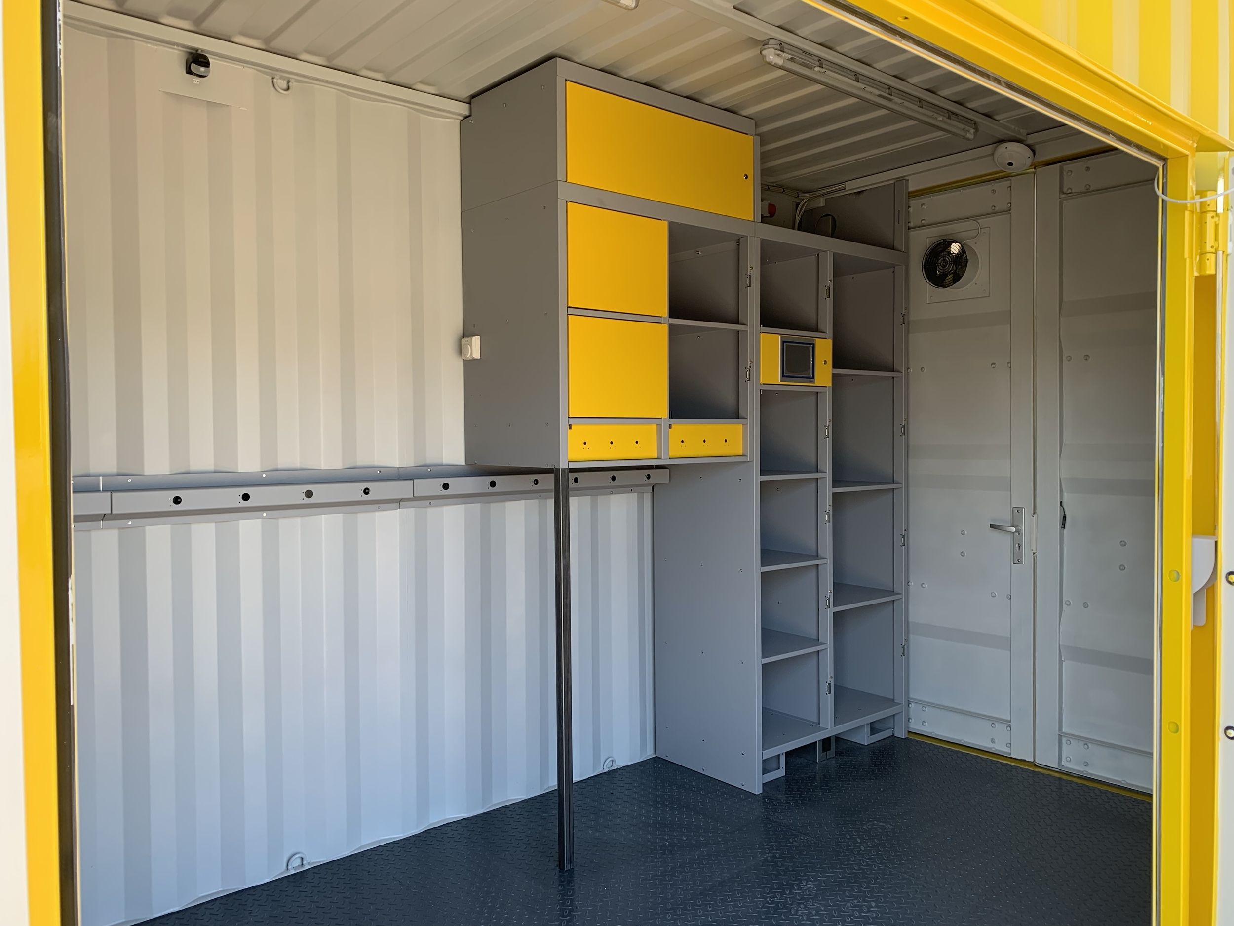 - Lagercontainer mit bedarfsgerechten Einbauten